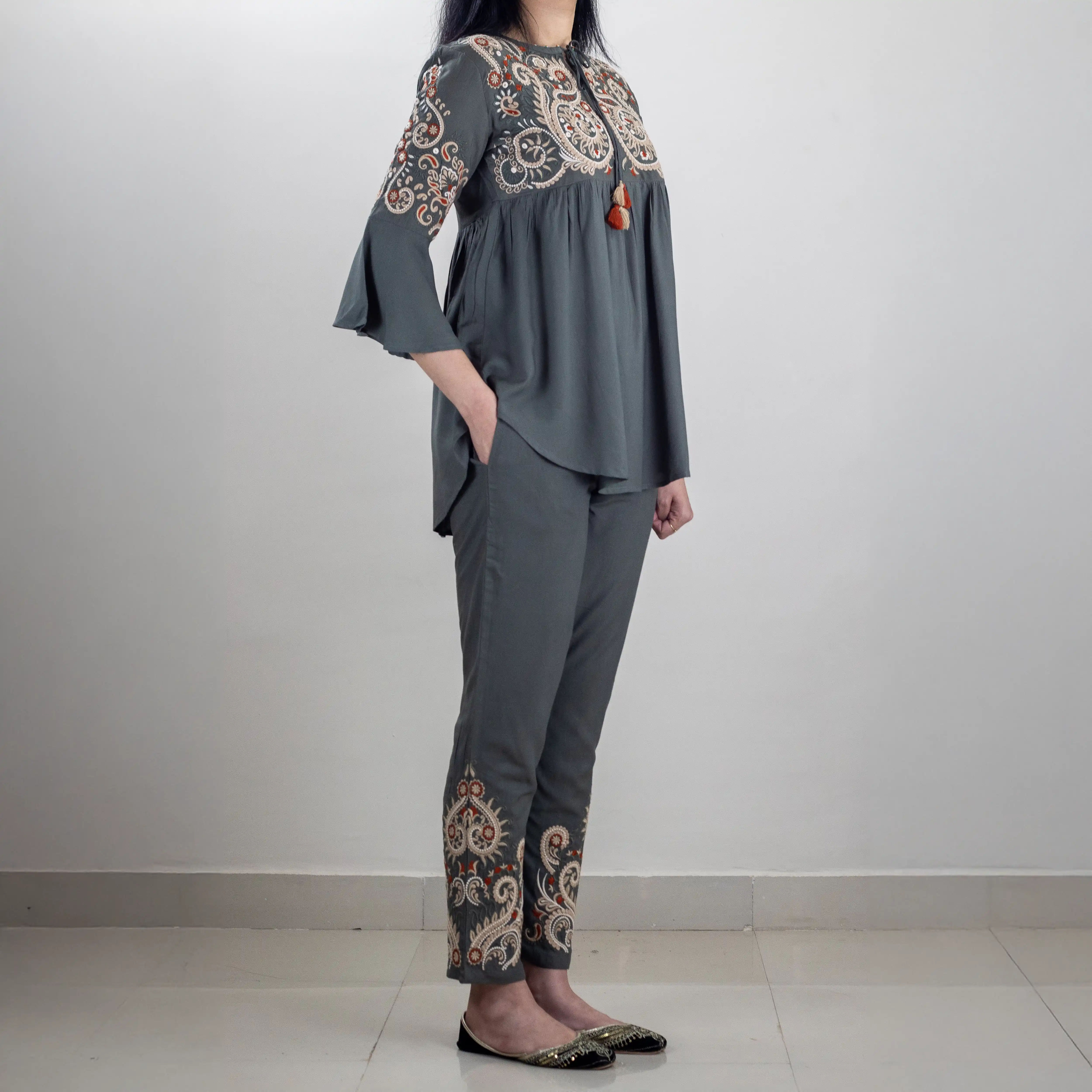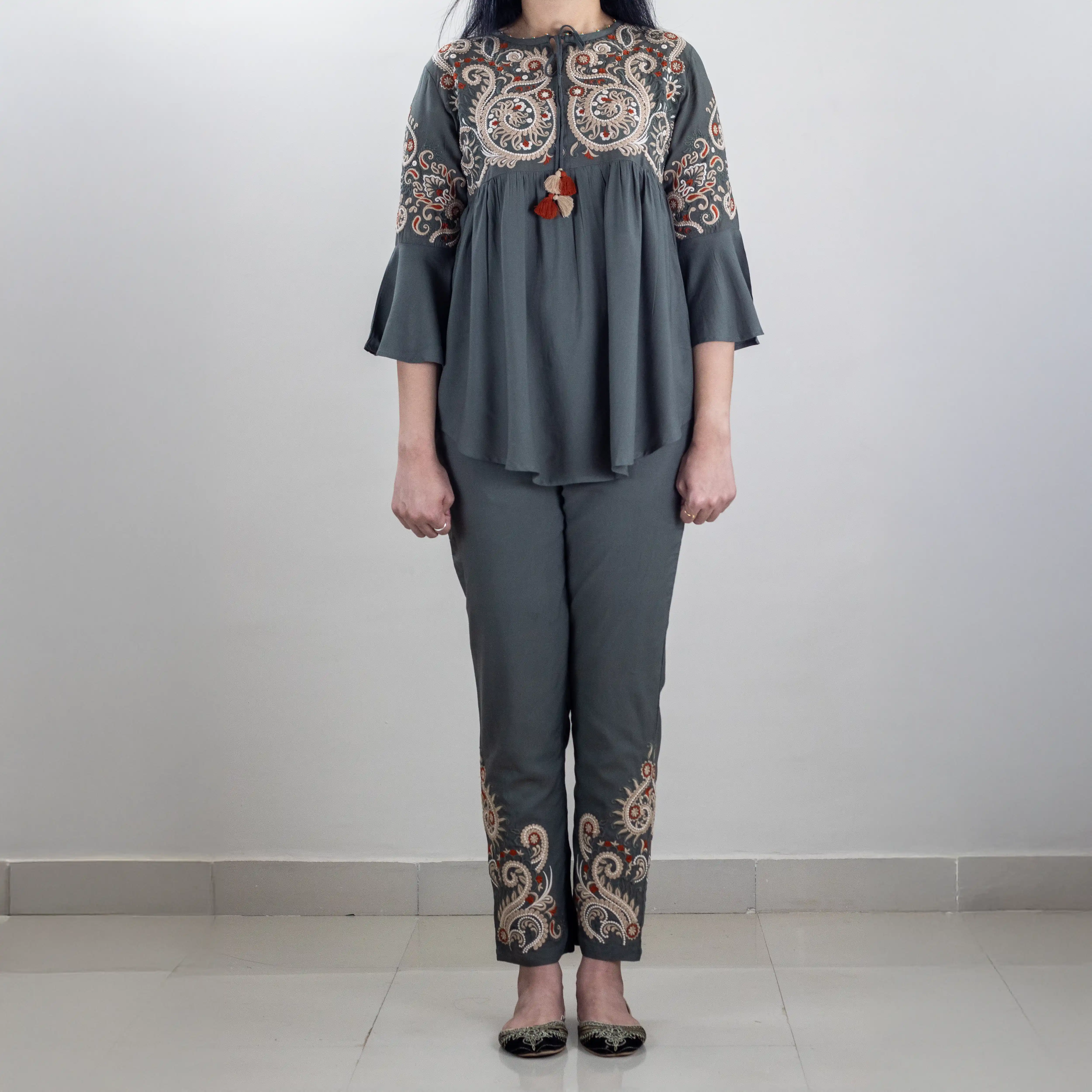 This Embroidered Cord Set is designed with quality embroidery, giving it a subtle yet stylish finish. Its lightweight material is perfect for all-day comfort. Perfect for any occasion, this set is an excellent choice for those looking to add a special touch to their outfit.