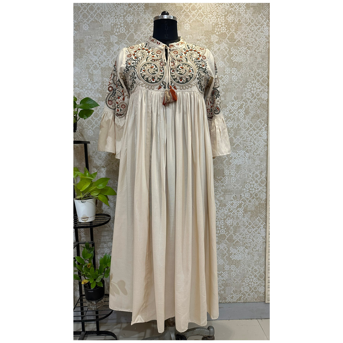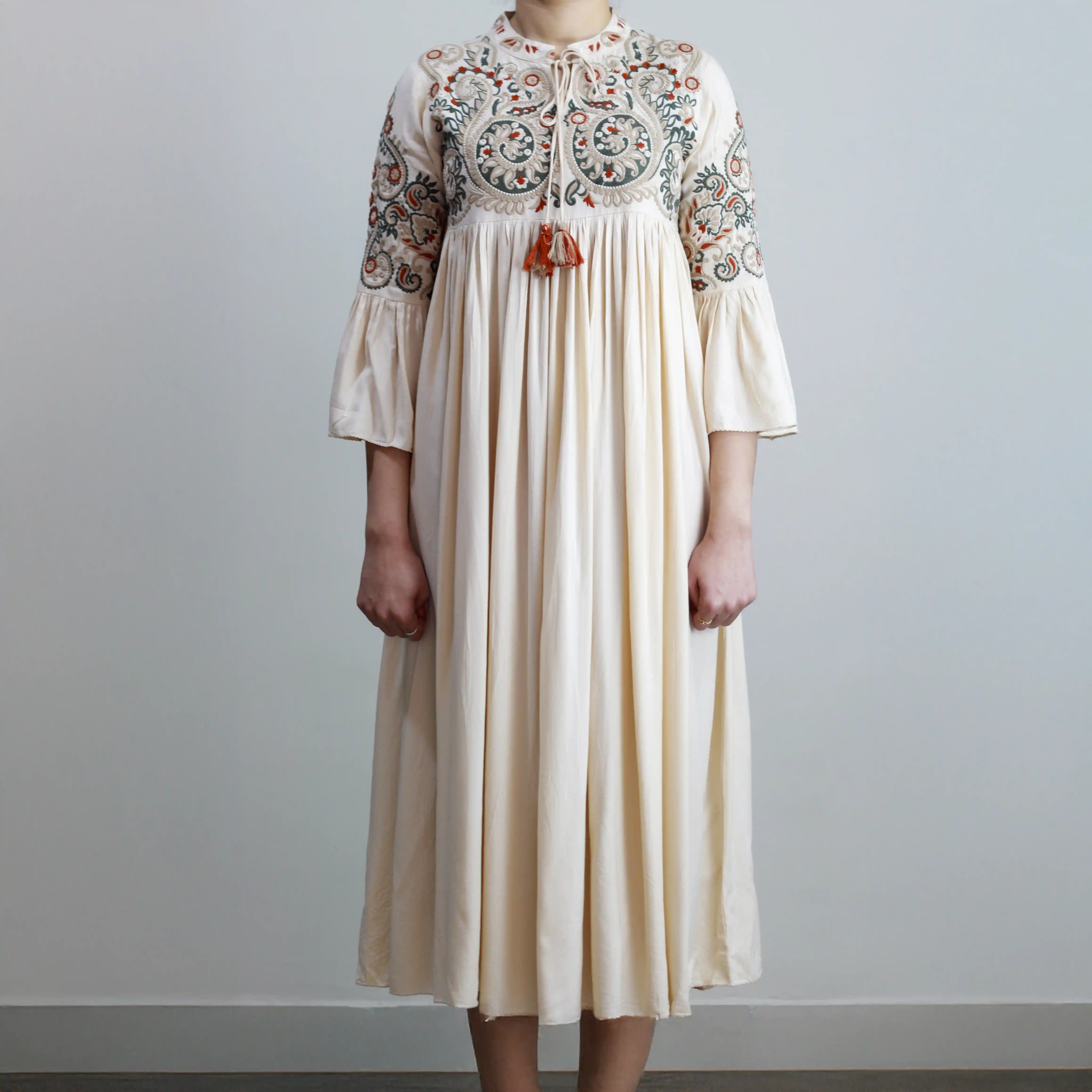 Look sophisticated and stylish in this embroidered maxi dress. This stunning dress is crafted from a luxuriously soft fabric and features intricate embroidery for a touch of textural detail. Perfect for special occasions and evening wear, this dress is sure to make a statement.
