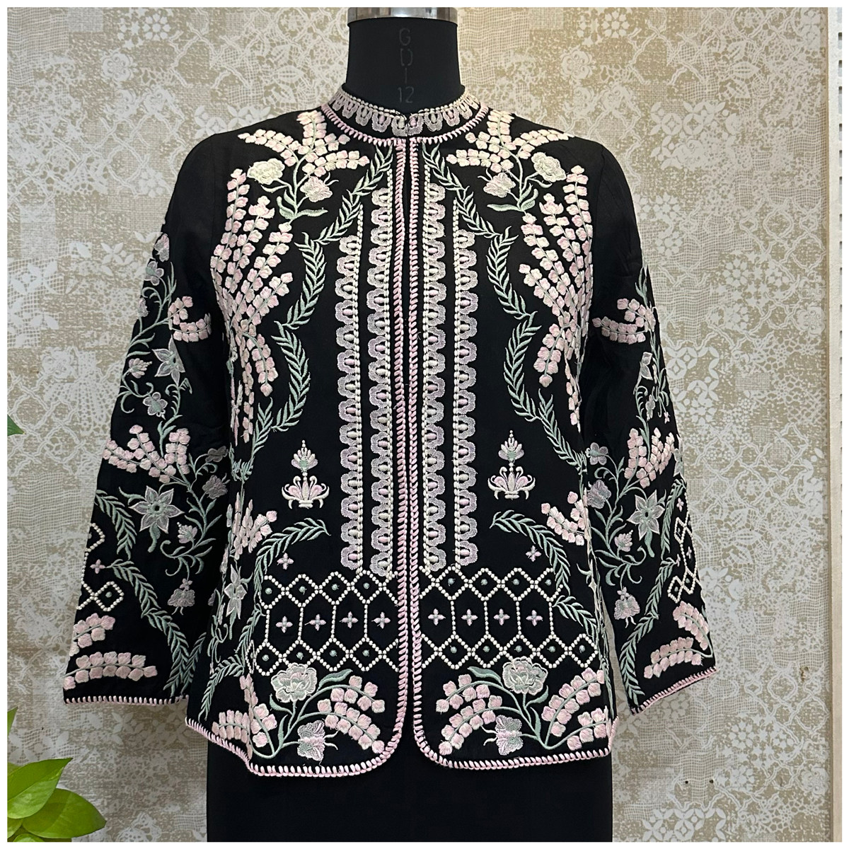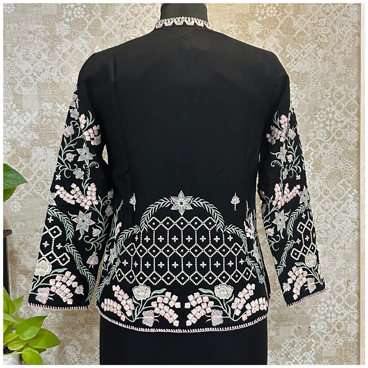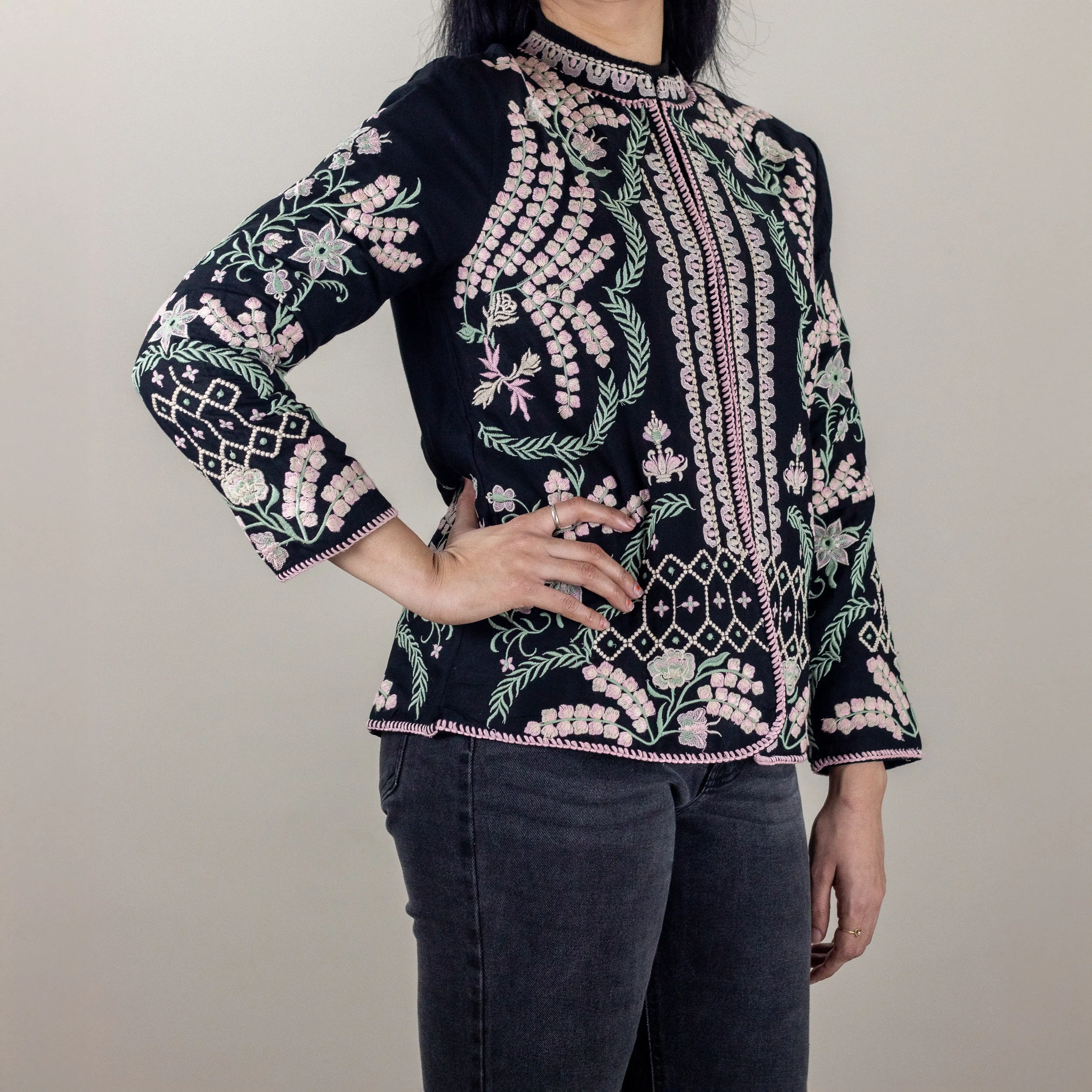 This black, embroidered jacket from CIELLE AW23 is the perfect piece for a fashionable yet comfortable look. Short and lightweight, the jacket features stunning embroidery that adds an elevated touch. An ideal statement piece for creating unique looks this season.