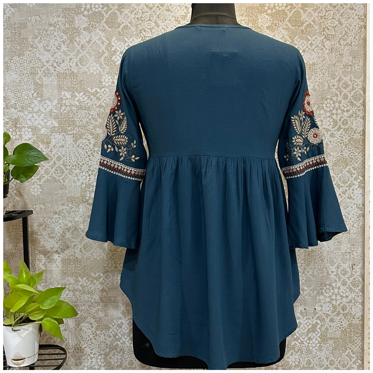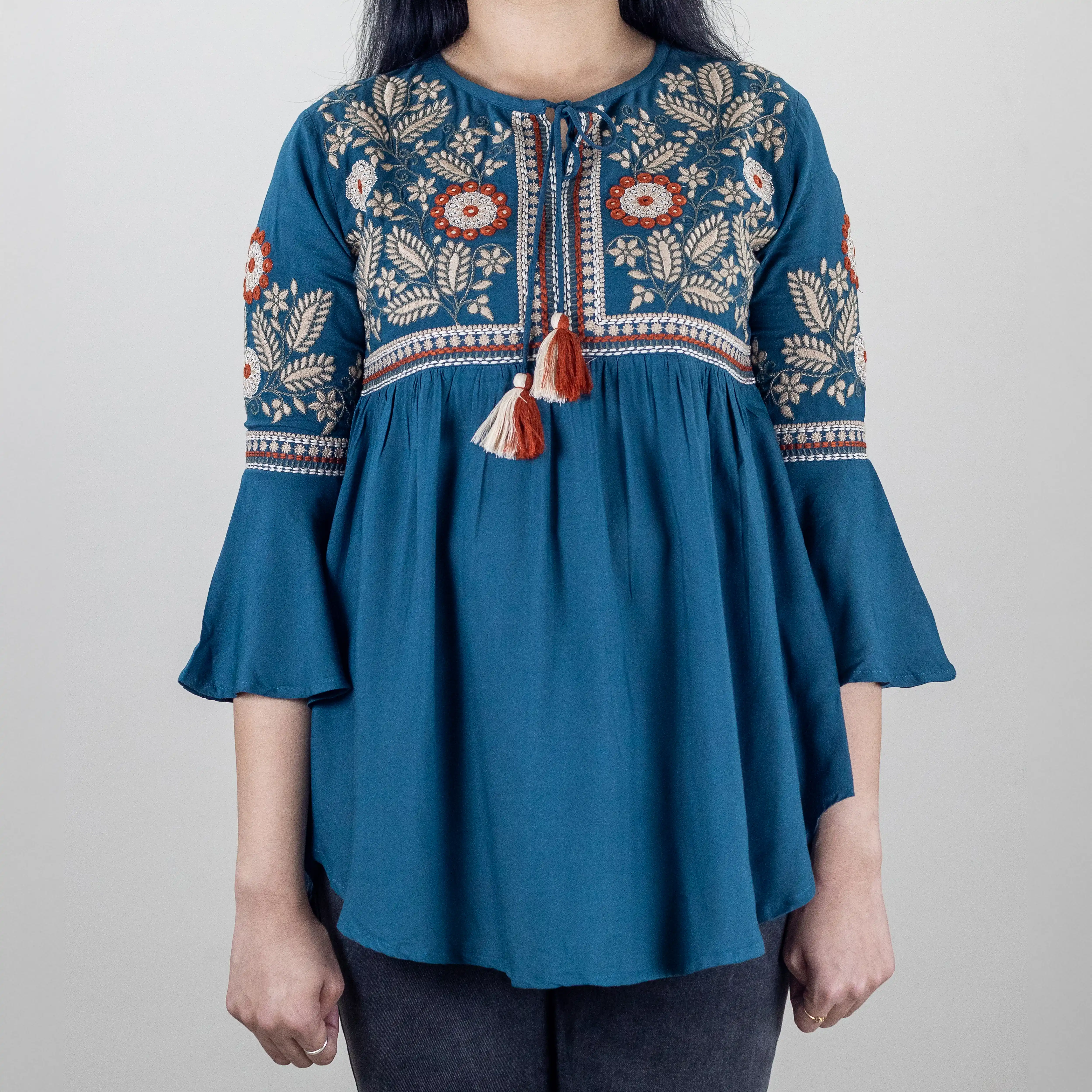 This stylish Embroidered Top is perfect for any occasion. With its beautiful design and intricate details, it will be sure to add an effortless touch of elegance to any look. The cotton fabric ensures comfort and breathability, and the design provides a flattering fit.