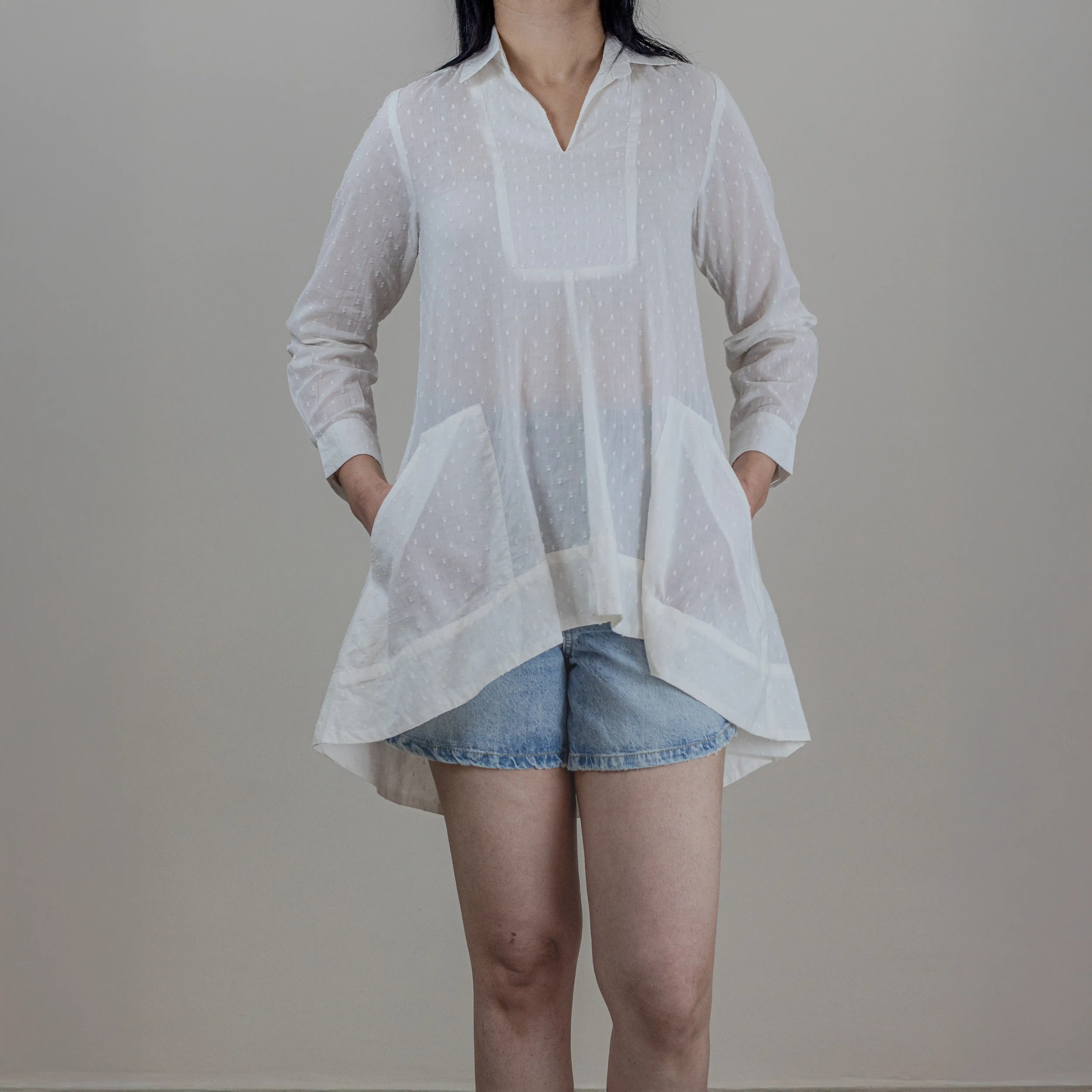 Cielle’s ‘Jade’ top is made from lightweight cotton in a loose shirt-style shape with a neat collar and floaty hem that’s shorter at front.