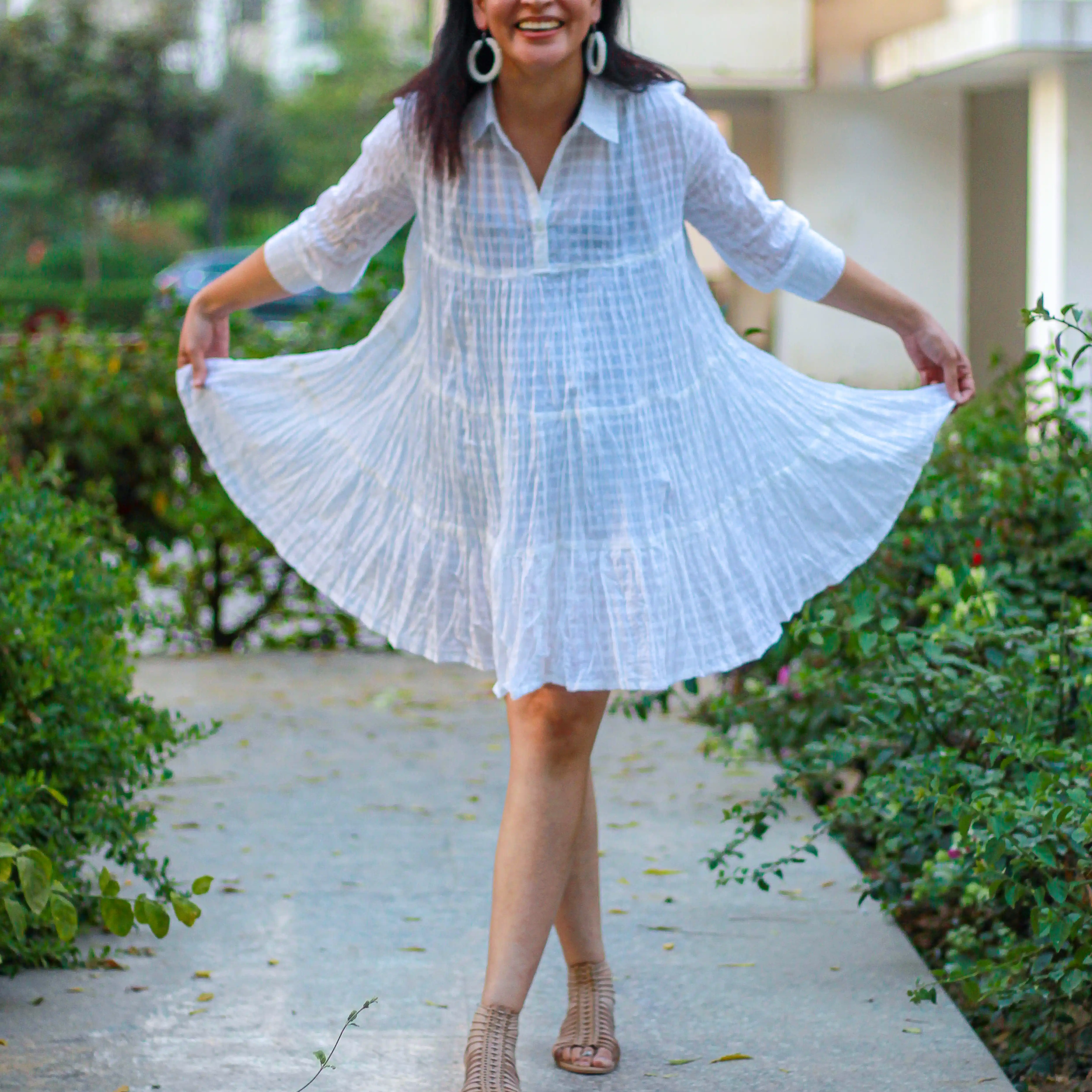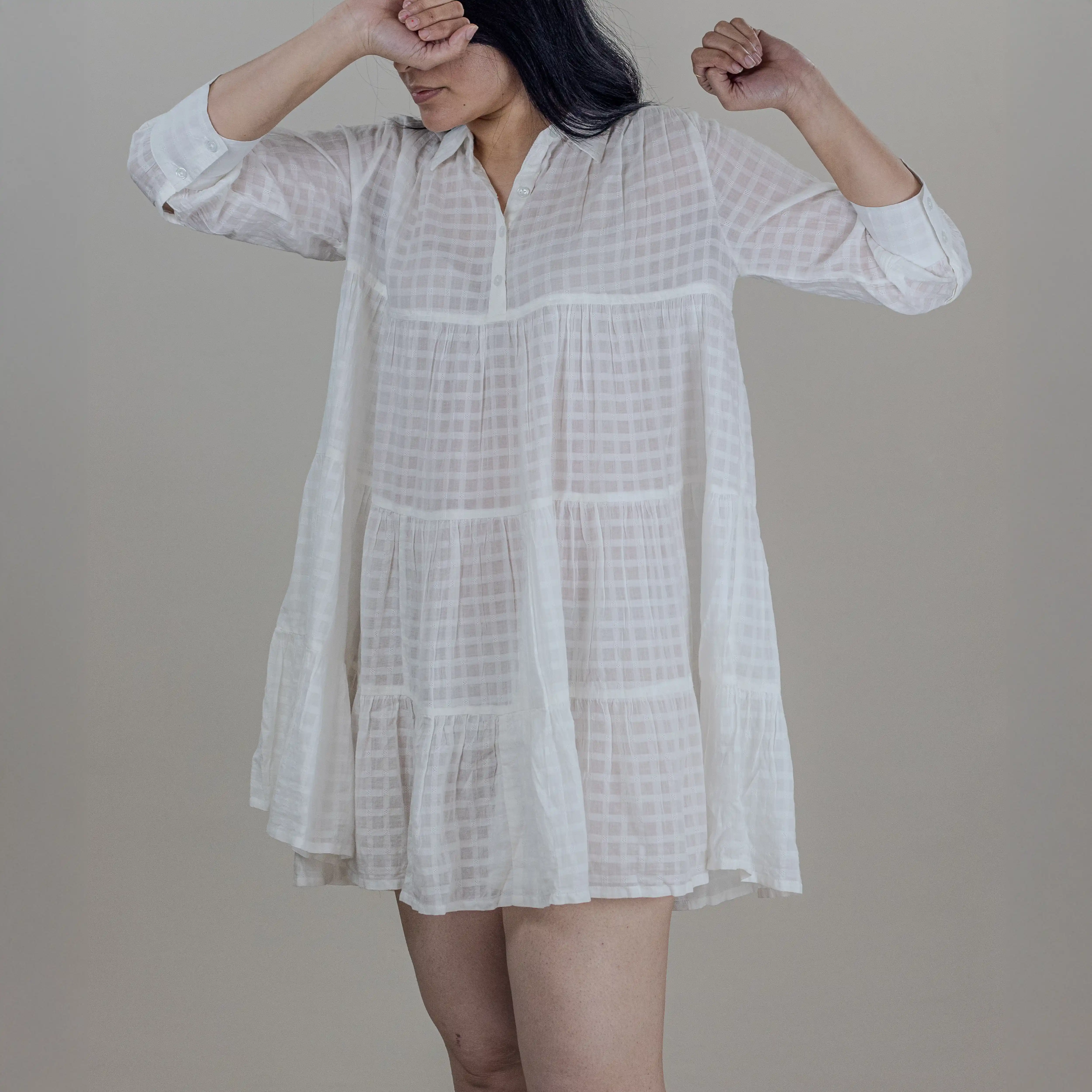 Cielle’s ‘Lilac’ short dress is designed to be playful. Cut from lightweight sheer cotton, the floaty, tiered hem and loose shape makes this outfit more joyful.