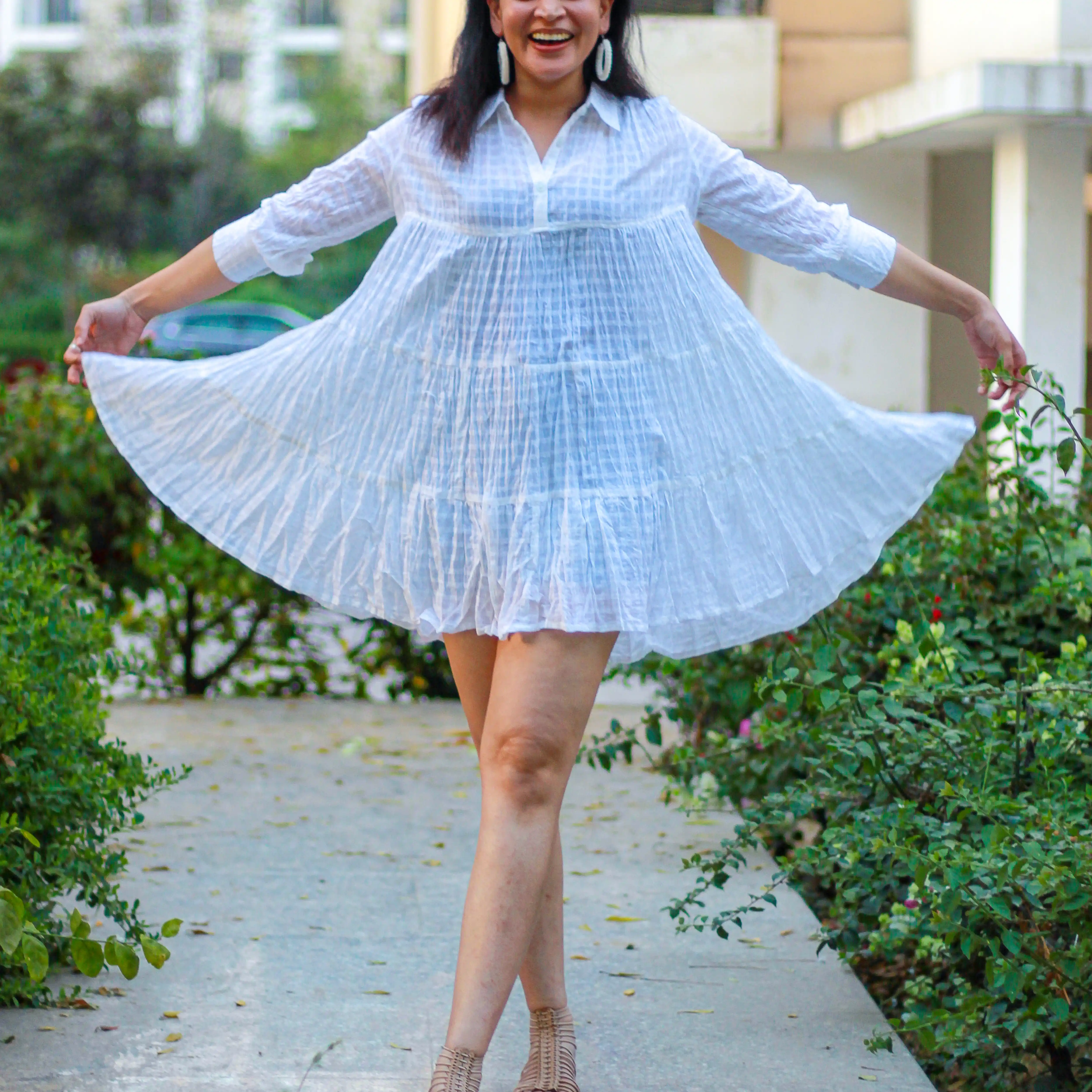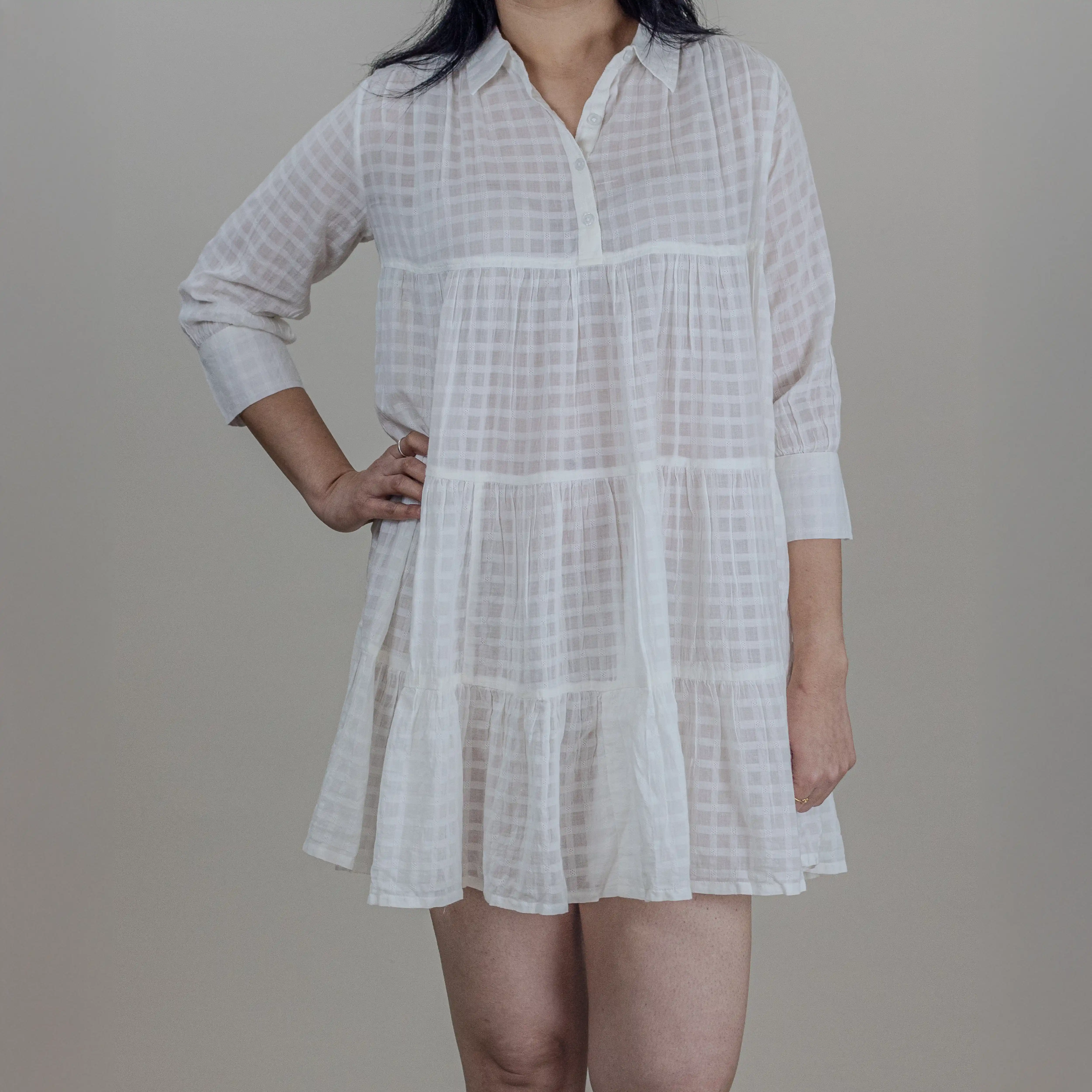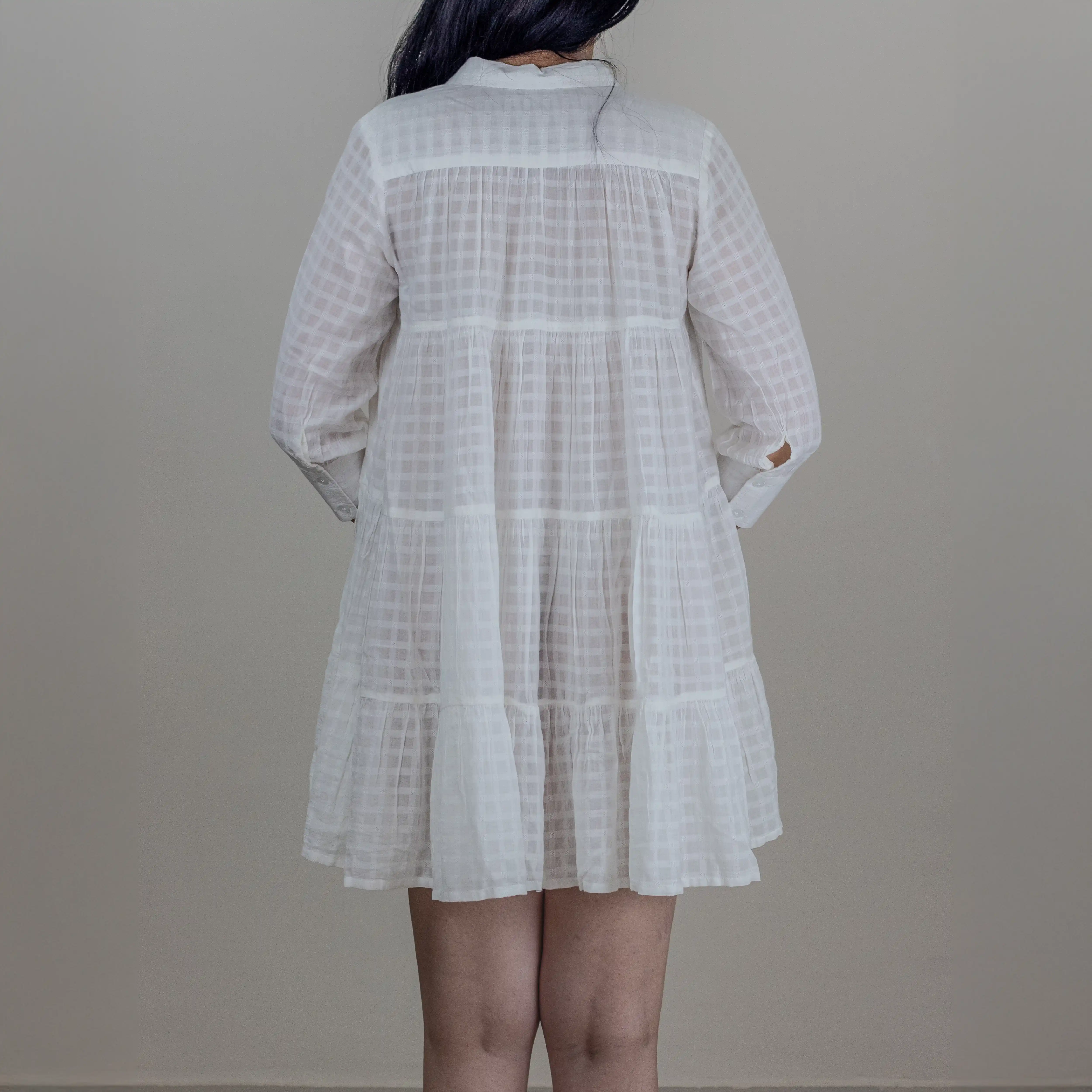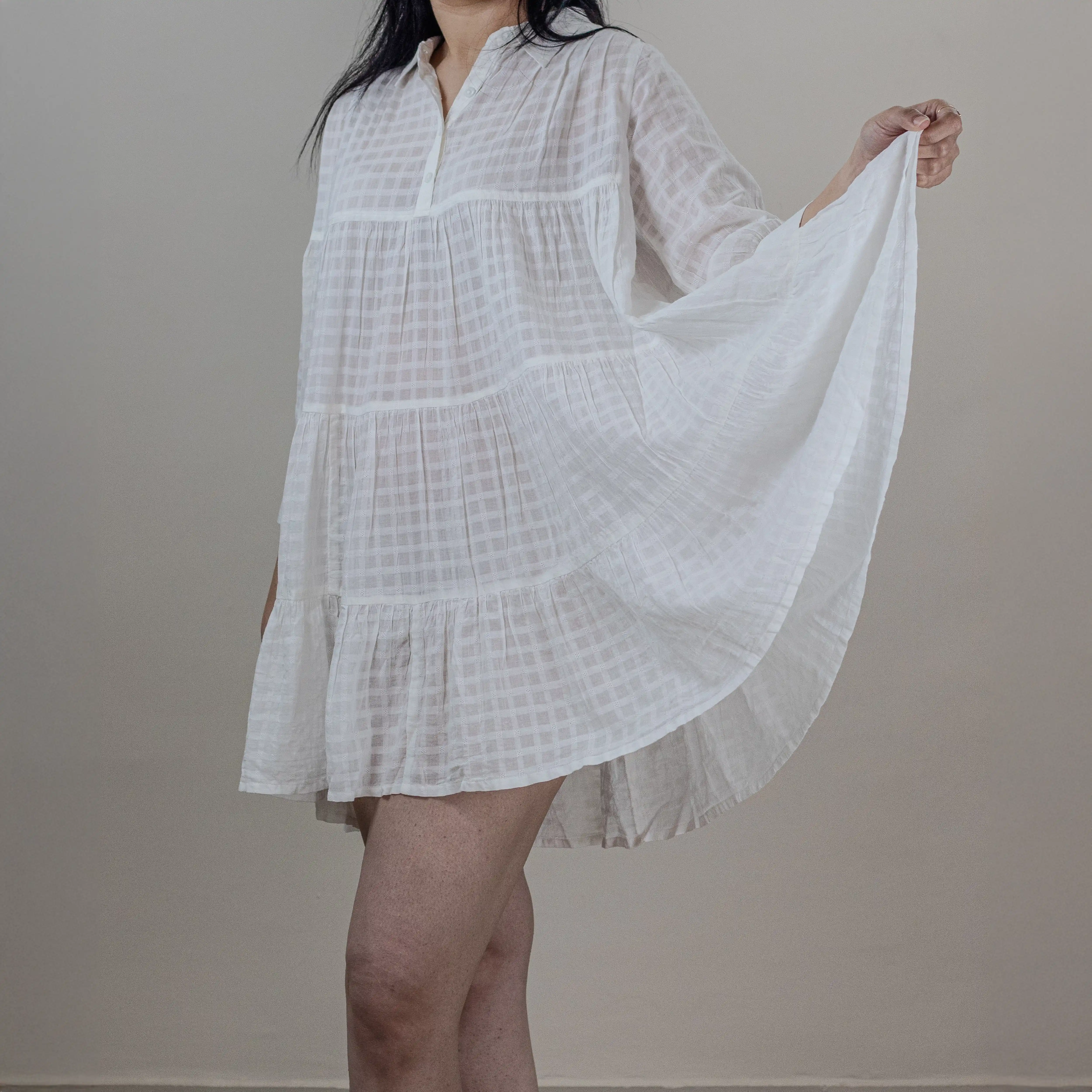Cielle’s ‘Lilac’ short dress is designed to be playful. Cut from lightweight sheer cotton, the floaty, tiered hem and loose shape makes this outfit more joyful.